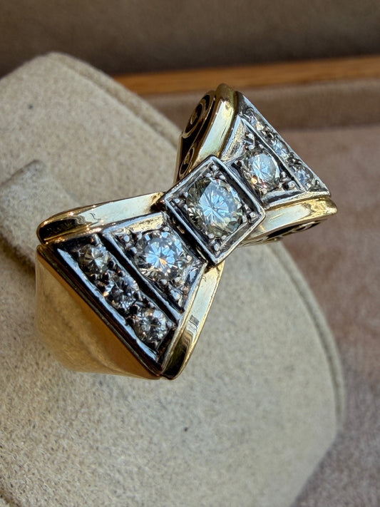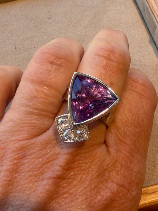JANINE RENARD (1947), BAGUE MODERNISTE AMETHYSTE & DIAMANTS