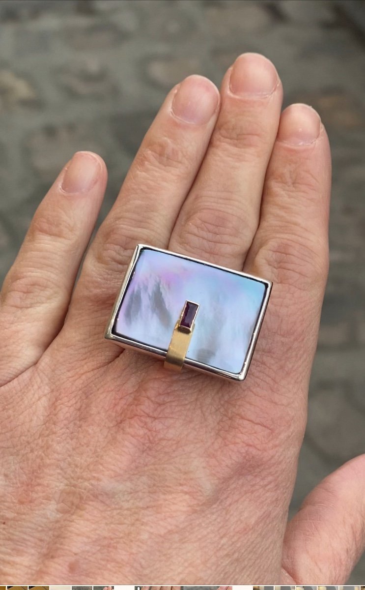 Janine Renard (1947), Modernist Mother-of-Pearl and Ruby Ring