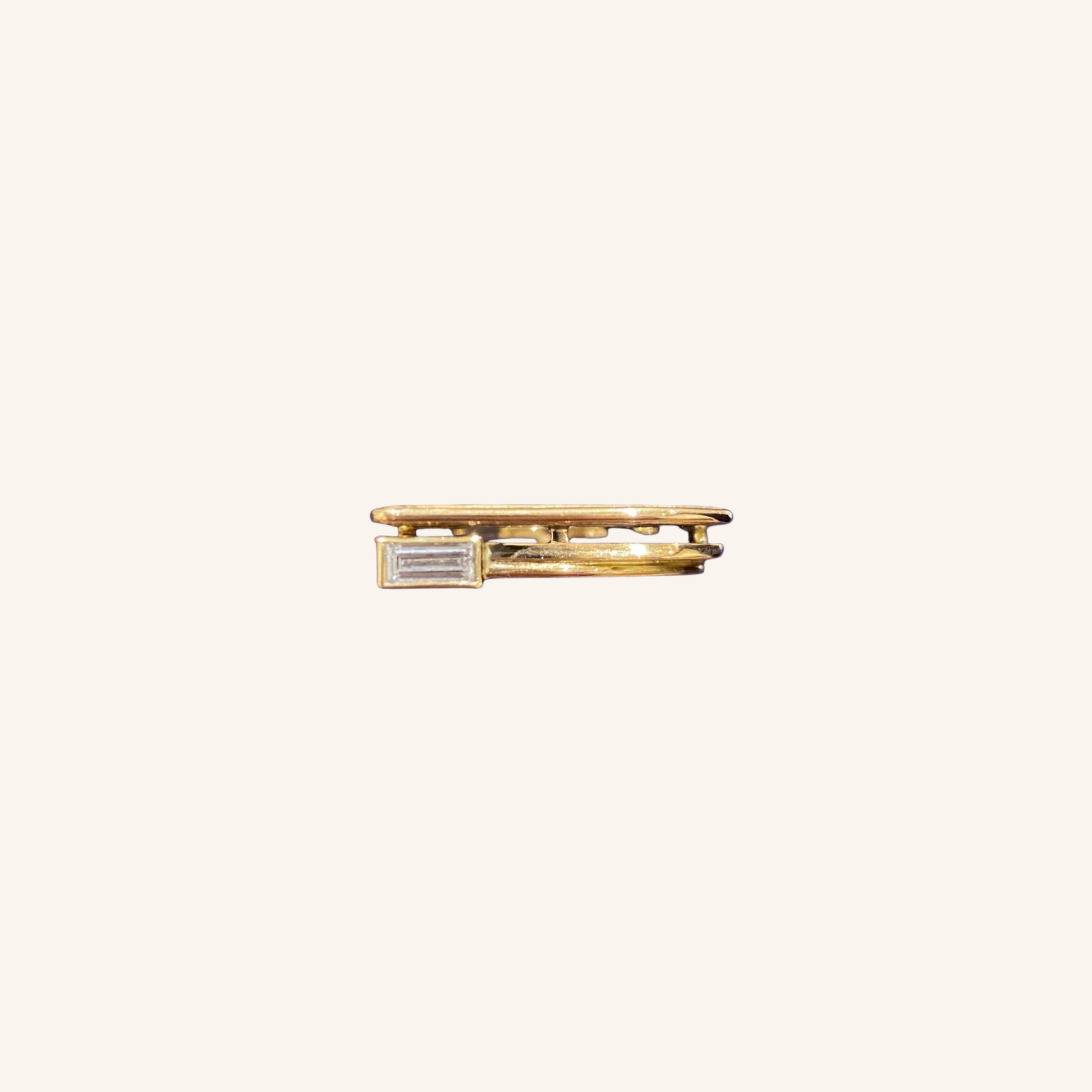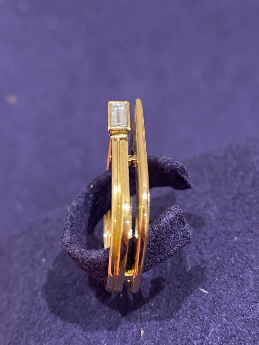 Modernist ring in yellow gold and baguette diamond