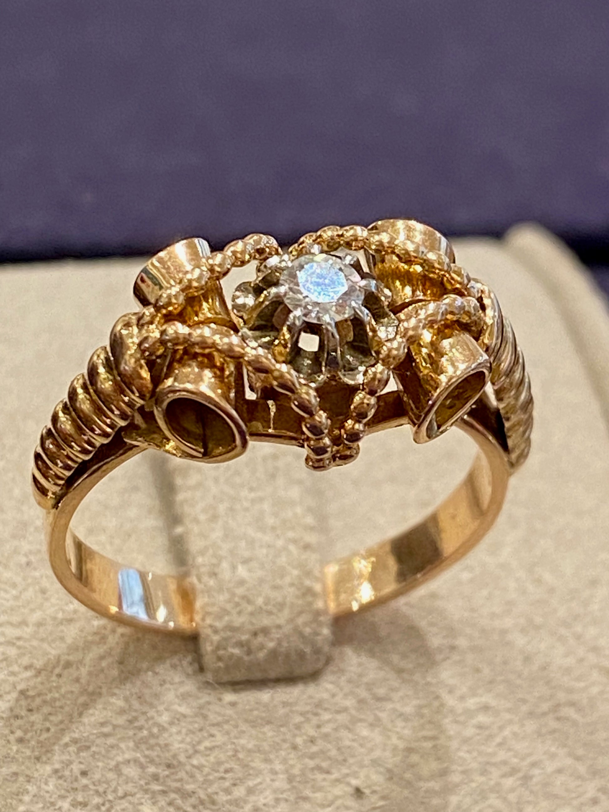 Bague Vintage En Or Rose Et Diamant