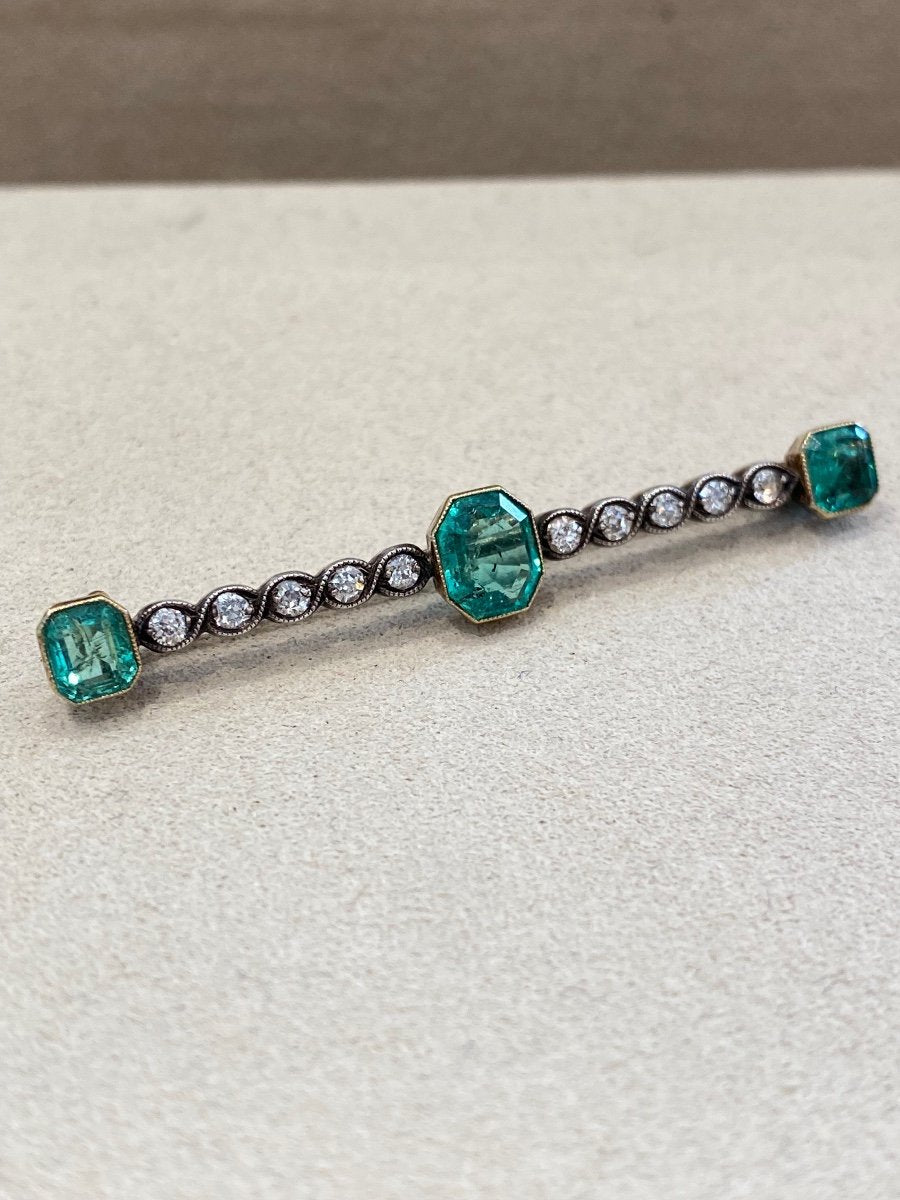 Broche Barrette émeraudes & Diamants