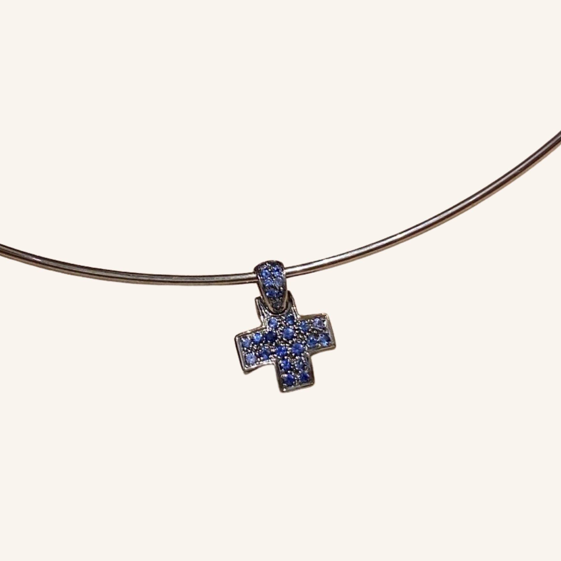 Pomellato, Collier Rigide Avec Croix En Or Pavée De Saphirs