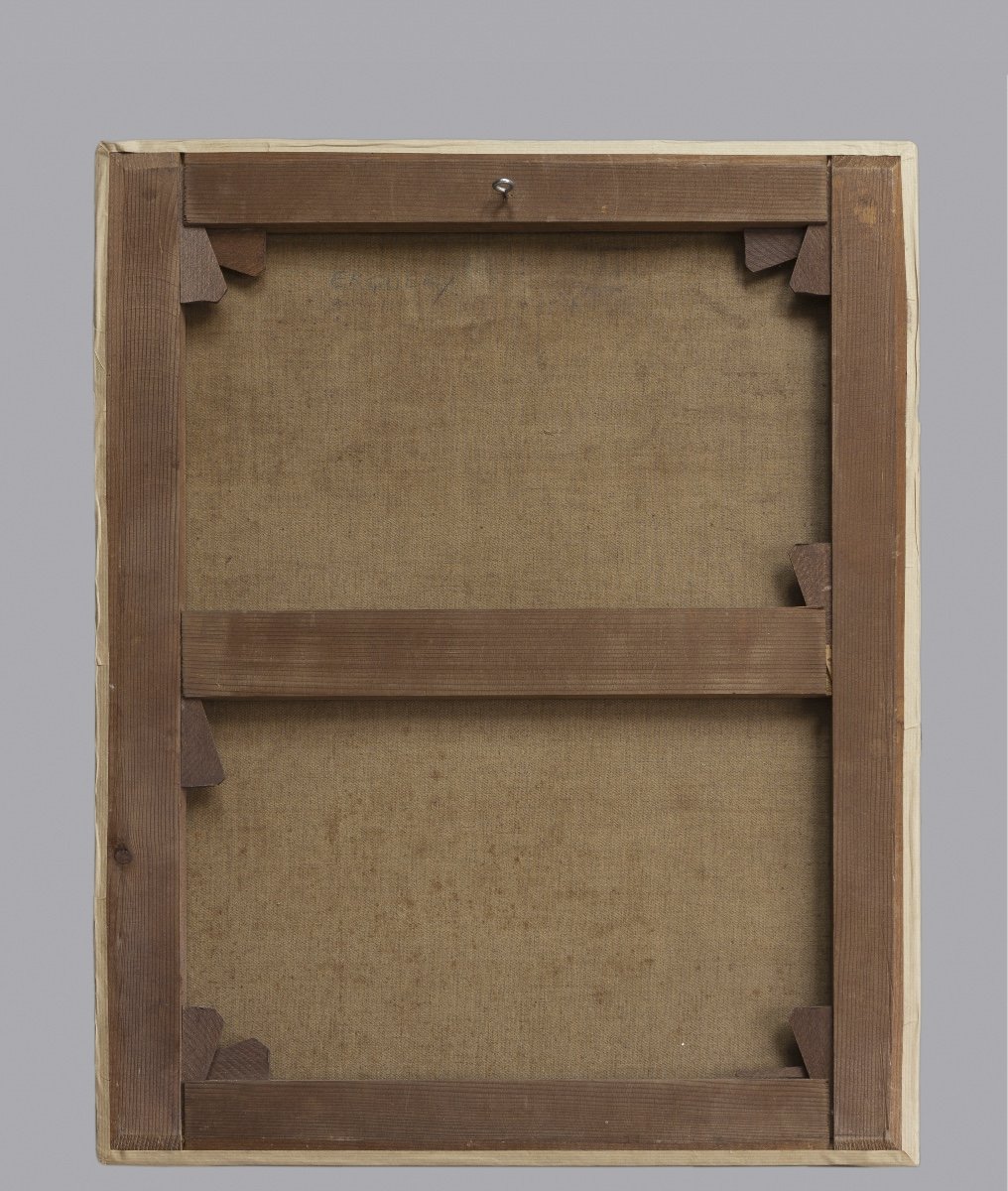 Tout en sobriété, ce portrait de belle qualité nous accueille avec un sourire esquissé et des yeux pétillants. La touche de blanc dans l’iris donne vie à ce personnage qui nous suit du regard.